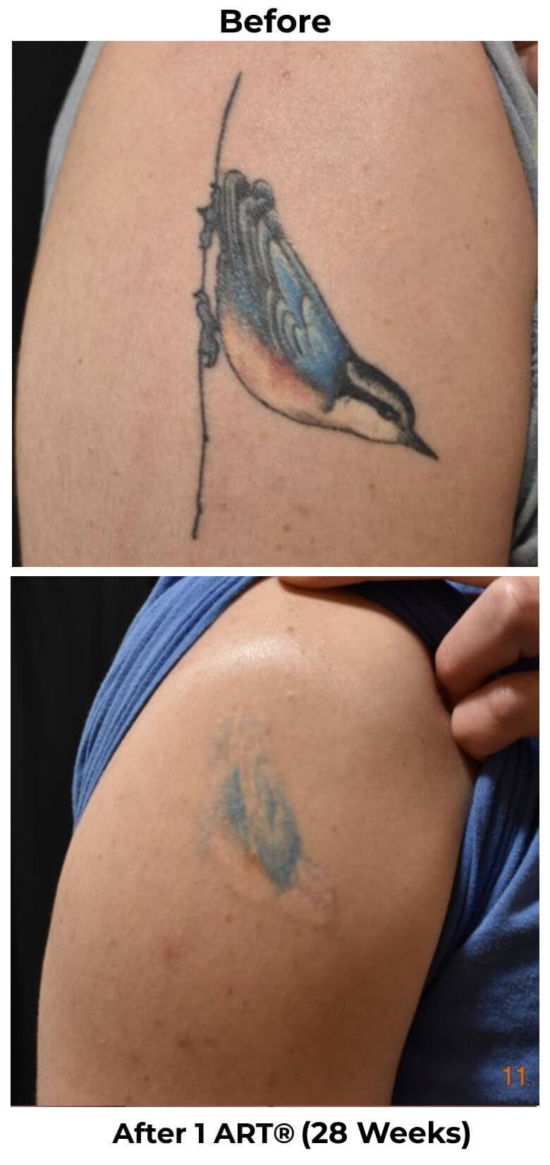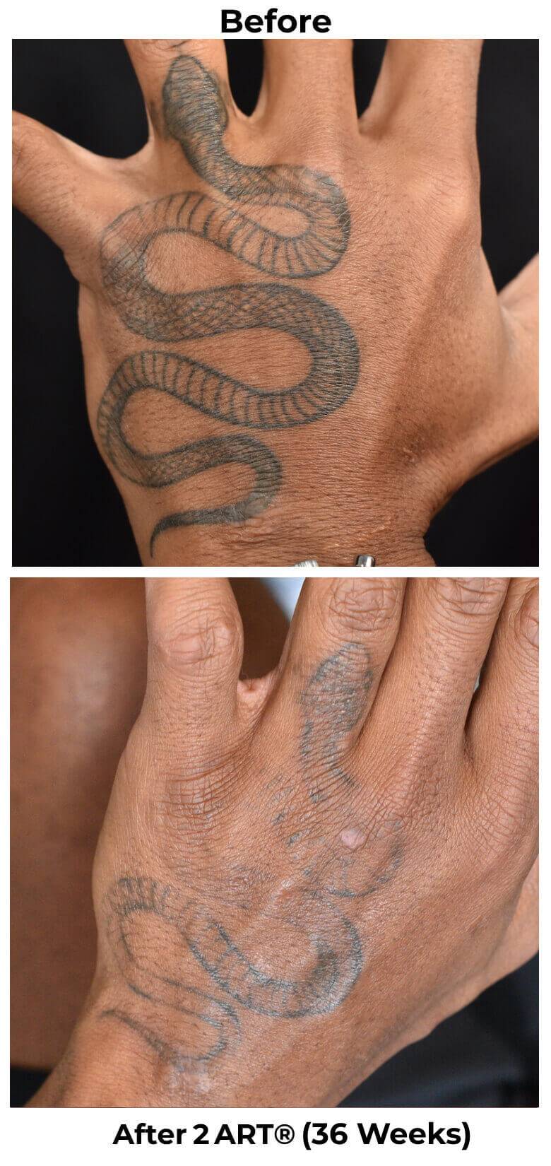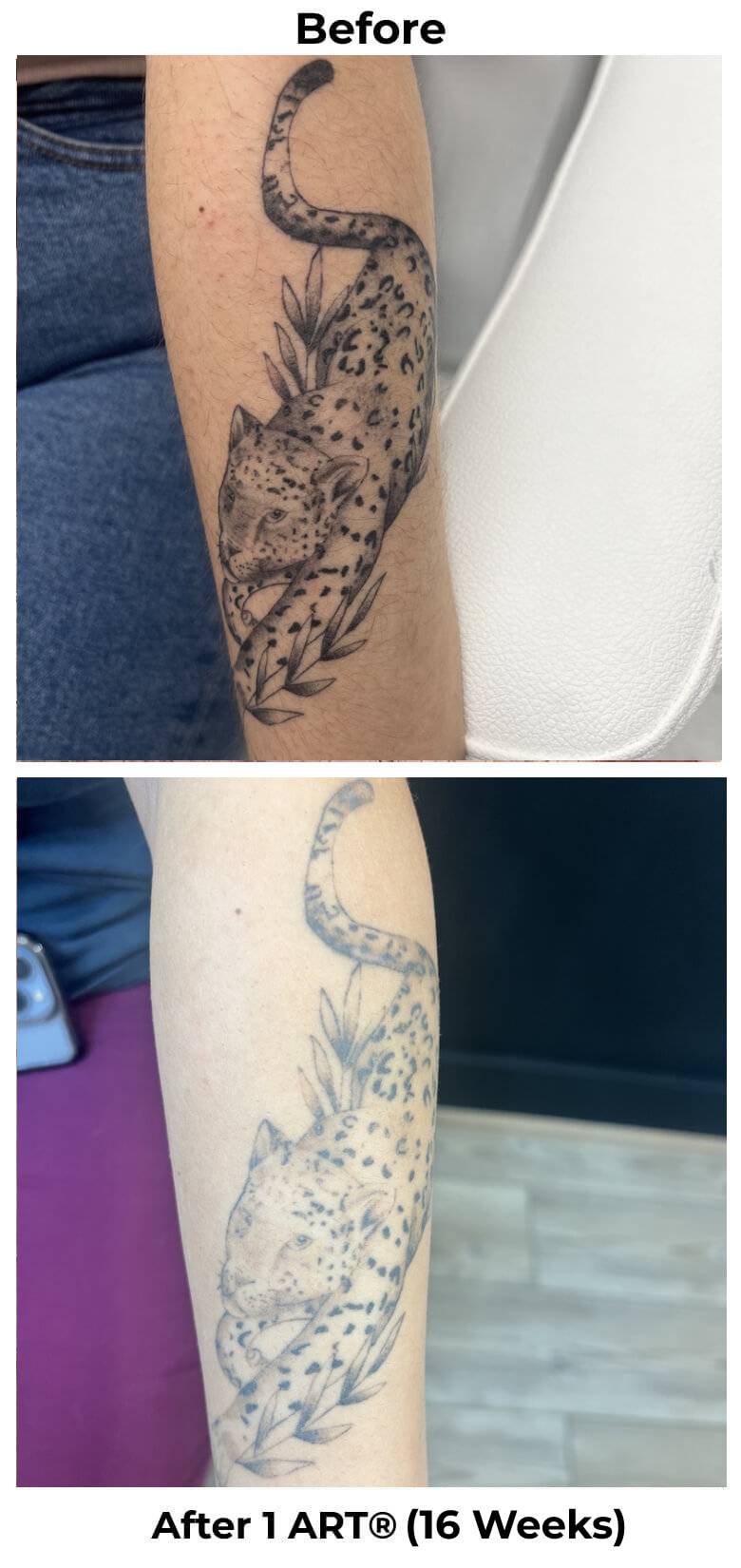 See the incredible difference just a few sessions can make. From bold, dark ink to barely-there or completely gone — our ART® technique delivers visible fading in weeks, not years.