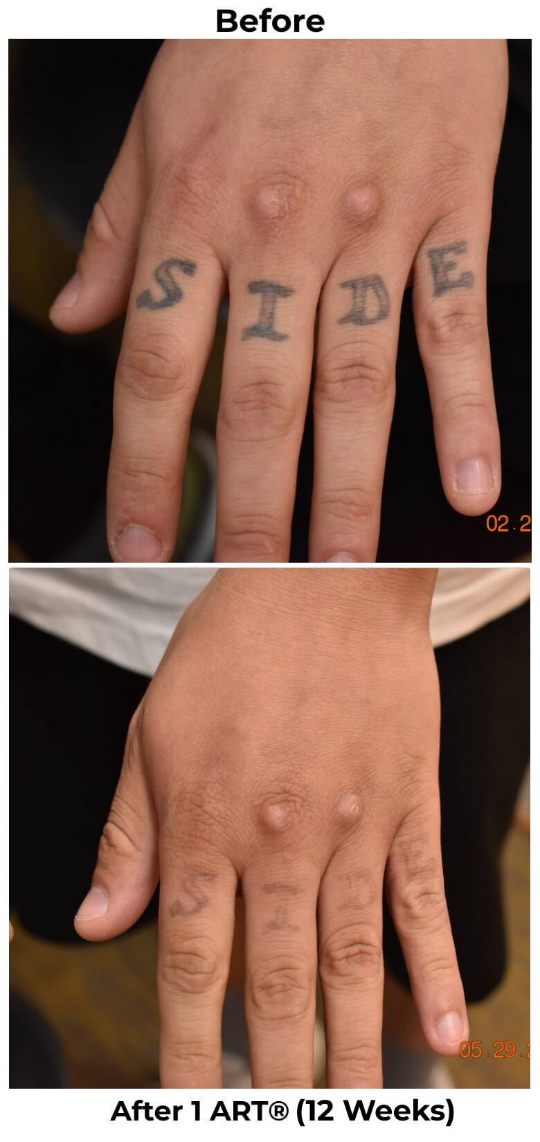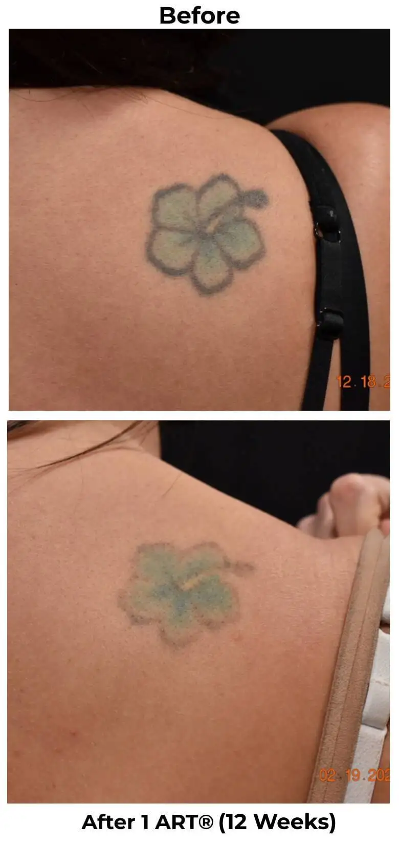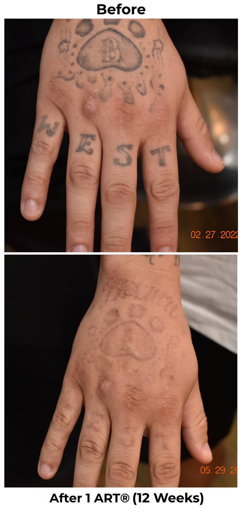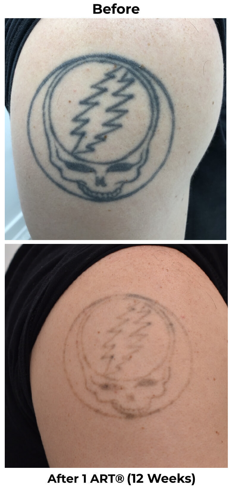 See the incredible difference just a few sessions can make. From bold, dark ink to barely-there or completely gone — our ART® technique delivers visible fading in weeks, not years.